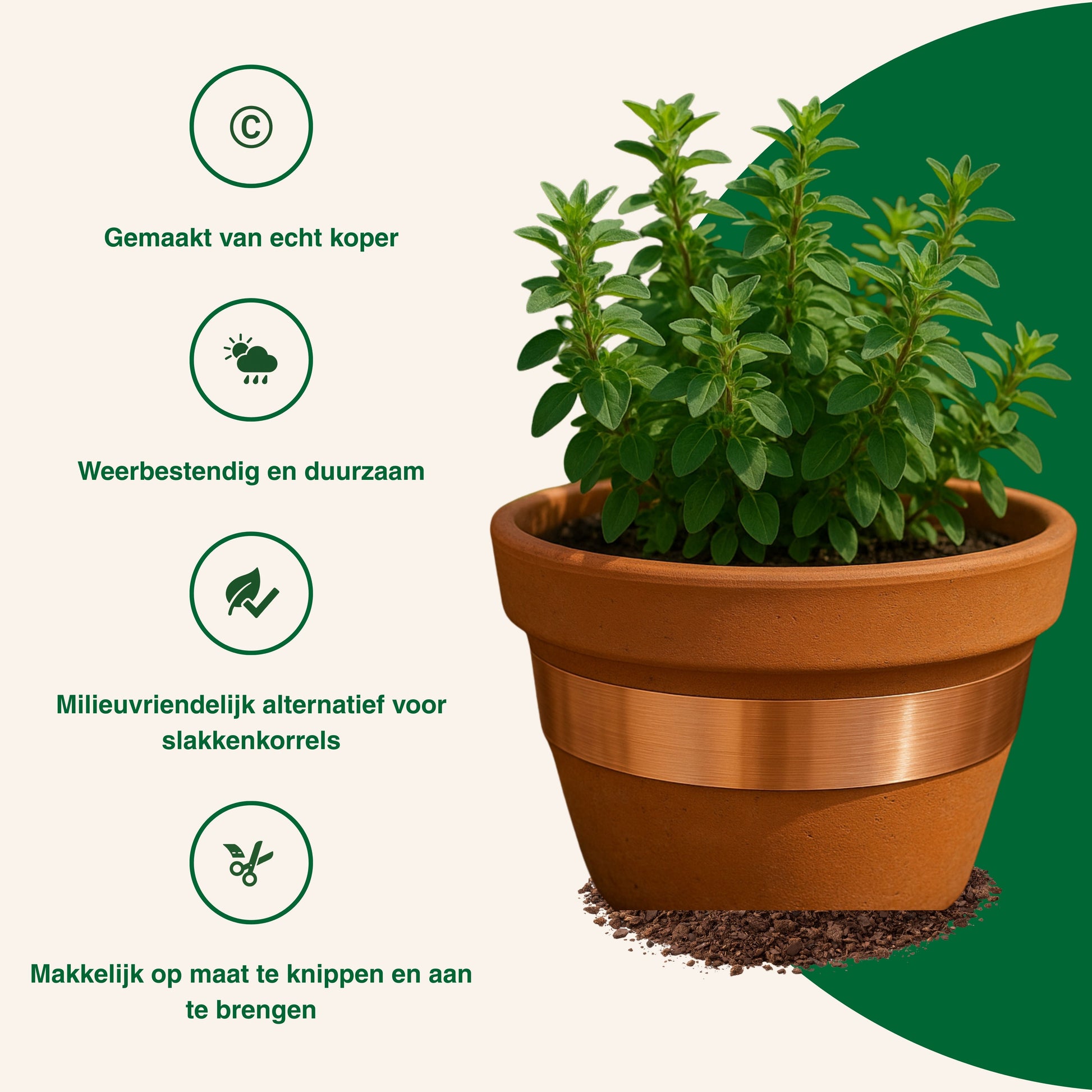 Slakken in je tuin? Tijd om ze een koperen lesje te leren. Aangevreten blaadjes, kale sla en slijmsporen: slakken kunnen in no-time je planten slopen. Met deze zelfklevende kopertape hou je ze veilig op afstand. Gifvrij, diervriendelijk en gewoon superhandig in gebruik.