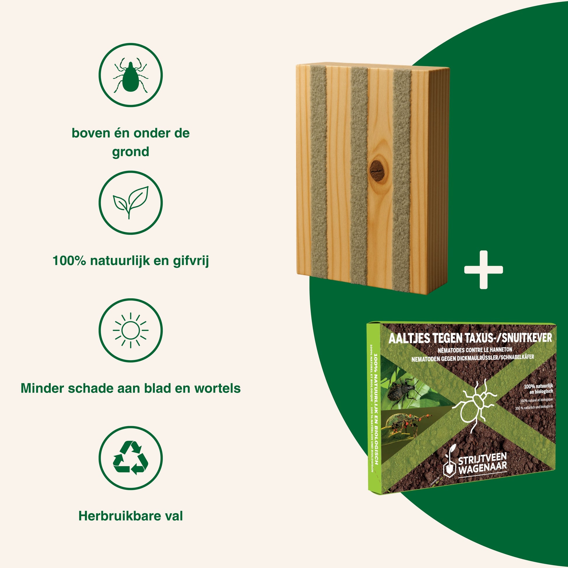 Samen vormen ze een krachtige, gifvrije aanpak tegen de hele cyclus van de taxuskever.